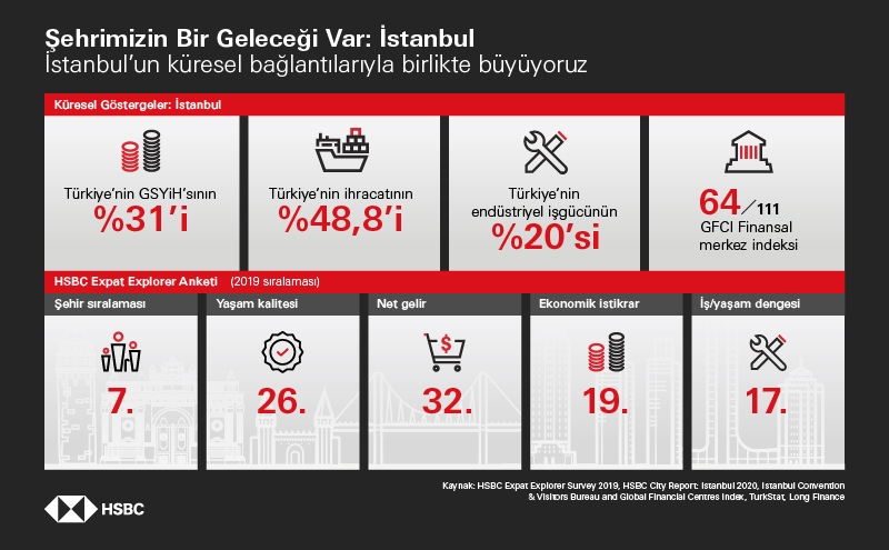 HSBC Türkiye Genel Müdürü Selim Kervancı, “Sürdürülebilir gelecek, finans, ticaret, sanayi ve diğer birçok sektördeki faaliyetler için stratejik rol oynayan şehirlerin sürdürülebilir ekonomilere sahip olmasına bağlı olacak. Sadece Türkiye’nin değil, dünyanın en büyük ve karmaşık ekonomilerinden birine sahip olan İstanbul’un sürdürülebilir küresel ekonomide rol oynayan şirketlerle birlikte büyümenin itici gücü olarak konumlandırılması birçok fırsatı beraberinde getiriyor. Türkiye’nin yatırım elçisi HSBC olarak; İstanbul’un sahip olduğu potansiyeli uluslararası platformlarda anlatarak ve hayata geçirilmesi planlanan yatırımlarda kullanılabilecek farklı finansman modellerini ülkemize getirerek müşterilerimizin yanında olmaya, müşterilerimizle birlikte büyümeye ve müşterilerimizle yarattığımız sinerjiyle Türkiye ekonomisine değer katmaya devam edeceğiz”.